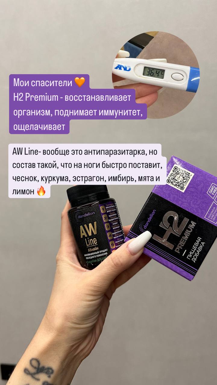 Но вспомнила, что у меня осталось немного нашей паразитарки, AW LINE и H2 premium. Делать нечего. Начала пить. Я знаю, что эти продукты обладают мощным восстанавливающим и иммуномодулирующим действием. Паразитарка, как известно, помогает вывести из организма все ненужное, очистить его от токсинов и подготовить к борьбе с инфекцией. AW LINE, с его богатым составом витаминов и минералов, призван поддержать организм изнутри, насытить его энергией и укрепить иммунитет. А H2 premium, как источник активного водорода, известен своими антиоксидантными свойствами, способностью нейтрализовать свободные радикалы и ускорять процессы регенерации. Я решила принимать их по схеме, рекомендованной специалистами, чтобы получить максимальный эффект.