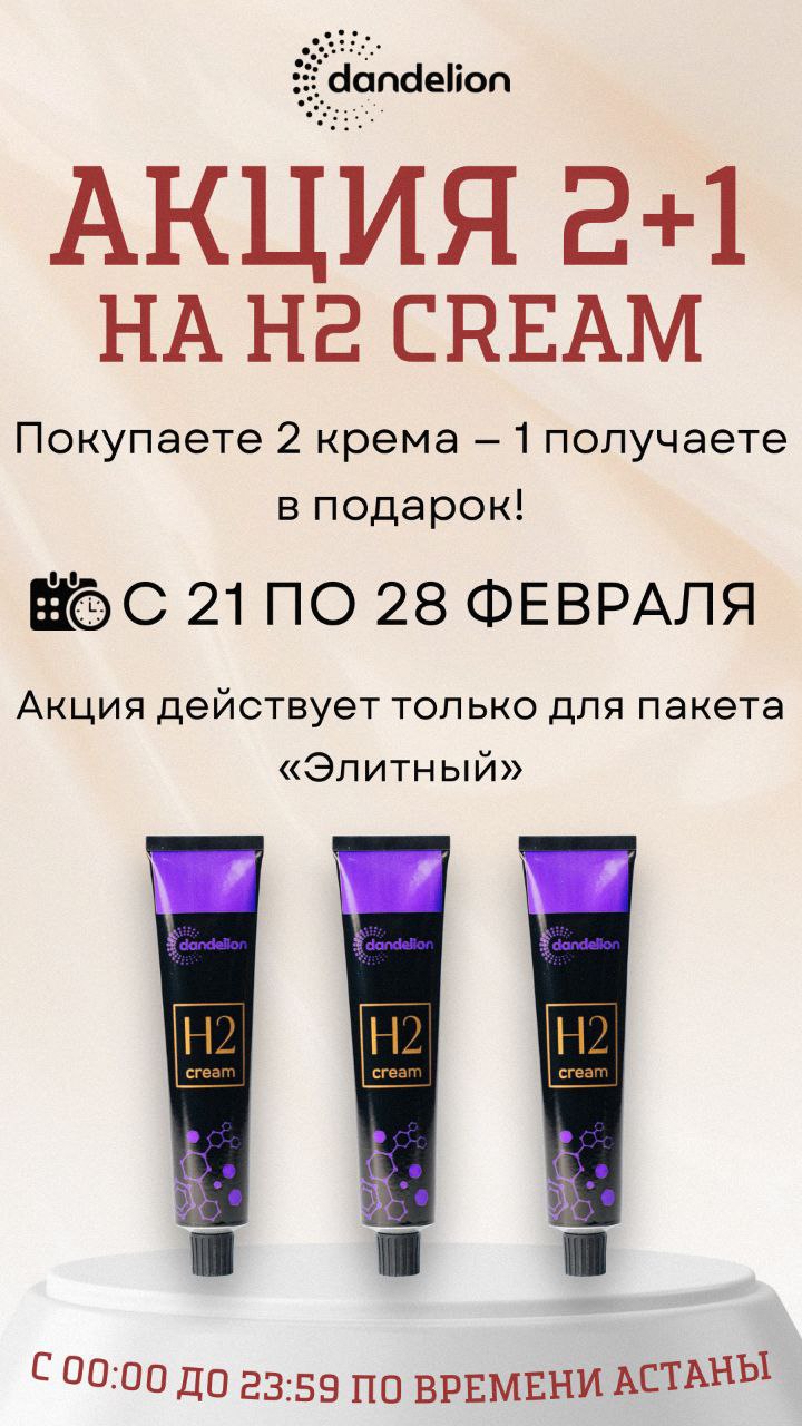 Крем на водородной основе от Dandelion. Омоложение. Супер глубокое проникновение. Мощь самого сильного антиоксиданта для молодости кожи. KРEM DANDELION H2 С МОЛЕКУЛЯРНЫМ ВОДОРОДОМ: ▫️Средне плотная структура ▫️Хорошо впитывается. Можно использовать под макияж. ▫️Перед применением обязательно очистить кожу. ▫️Могут встречаться микрочастицы, что свидетельствует о высокой концентрации активных компонентов. ▫️Применение может сопровождаться лёгкими вибрациями, ощущением тепла или покалывания – это нормальная реакция кожи на активное воздействие водорода. Крем на водородной основе, одна из первых разработок в этом направлении, представляет собой инновационный подход к уходу за кожей. Формула крема обогащена антиоксидантами, которые борются со свободными радикалами, защищая кожу от преждевременного старения.