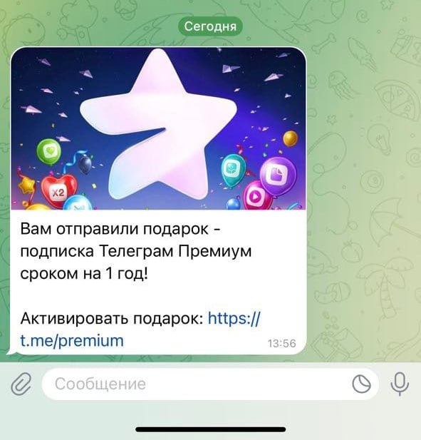 Разводка выглядит просто: от знакомого контакта приходит подарок с «Телеграм-премиум». Часто такие сообщения сопровождаются фразами типа «Смотри, какой крутой подарок тебе прилетел!» или «Ты выиграл подписку на Телеграм-премиум, переходи по ссылке, чтобы забрать!». Пользователю предлагают пройти по ссылке, которая внешне может выглядеть как официальная ссылка Телеграма, и залогиниться, введя свои учетные данные. Как только человек вводит свой логин и пароль на поддельном сайте, аккаунт у него угоняют. Злоумышленники получают полный доступ к вашему аккаунту: они могут читать вашу переписку, отправлять сообщения от вашего имени, получать доступ к контактам и даже использовать ваш аккаунт для дальнейшего распространения мошеннических схем.