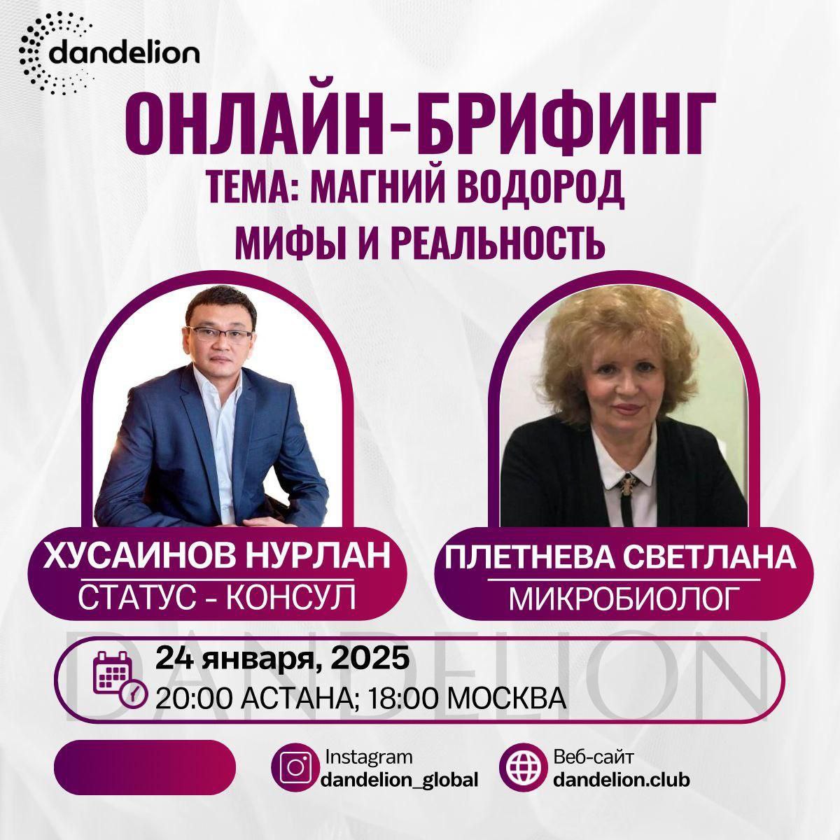 Хусаинов Нурлан, известный специалист по нутрицевтике, задаст ключевые вопросы о препаратах компании Dandelion, сосредоточившись на их механизмах действия и безопасности. Он проведет детальное сравнение нашего флагманского продукта H2 Premium с аналогичными препаратами других компаний, опираясь на объективные данные и научные исследования.