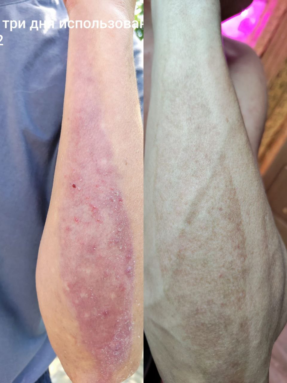 Добрый вечер Добрый вечер Хочу поделиться хорошим, даже наверное ЗАМЕЧАТЕЛЬНЫМ результатом Это мой муж, он летом обжёг руку (на первом фото прошла неделя, и я почему-то вспомнила про крем Н2, это три дня, как использовали наш замечательный крем, кстати мы им ещё два, три раза помазали и забыли про ожег, потому что он его не беспокоил). Ожог был достаточно серьёзным, с волдырями и сильной болью. Врач рекомендовал стандартное лечение, но мы решили попробовать крем Н2, о котором слышали много положительных отзывов. На фото видно, как быстро пошло заживление. Краснота спала, волдыри исчезли, и, что самое главное, муж перестал испытывать дискомфорт. Он спокойно занимался своими делами, не испытывая боли и зуда. Ну, а сегодня, …. Результат вы видите сами, я просто обомлела увидев его руку Кожа полностью восстановилась, не осталось ни шрамов, ни покраснений. Мы очень рады, что сделали такой выбор! Крем Н2 действительно оказался спасением. Мы настоятельно рекомендуем его всем, кто столкнулся с подобной проблемой. Этот крем – настоящая находка!